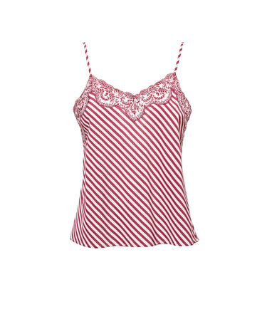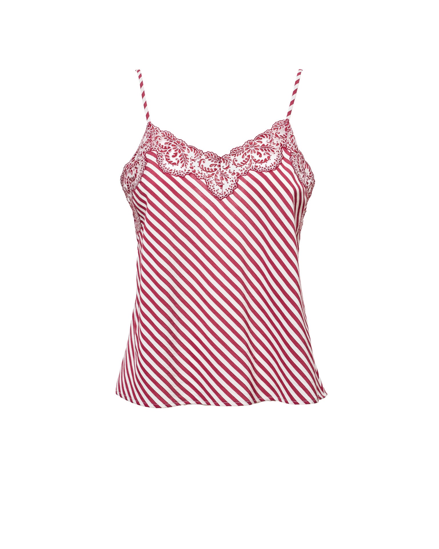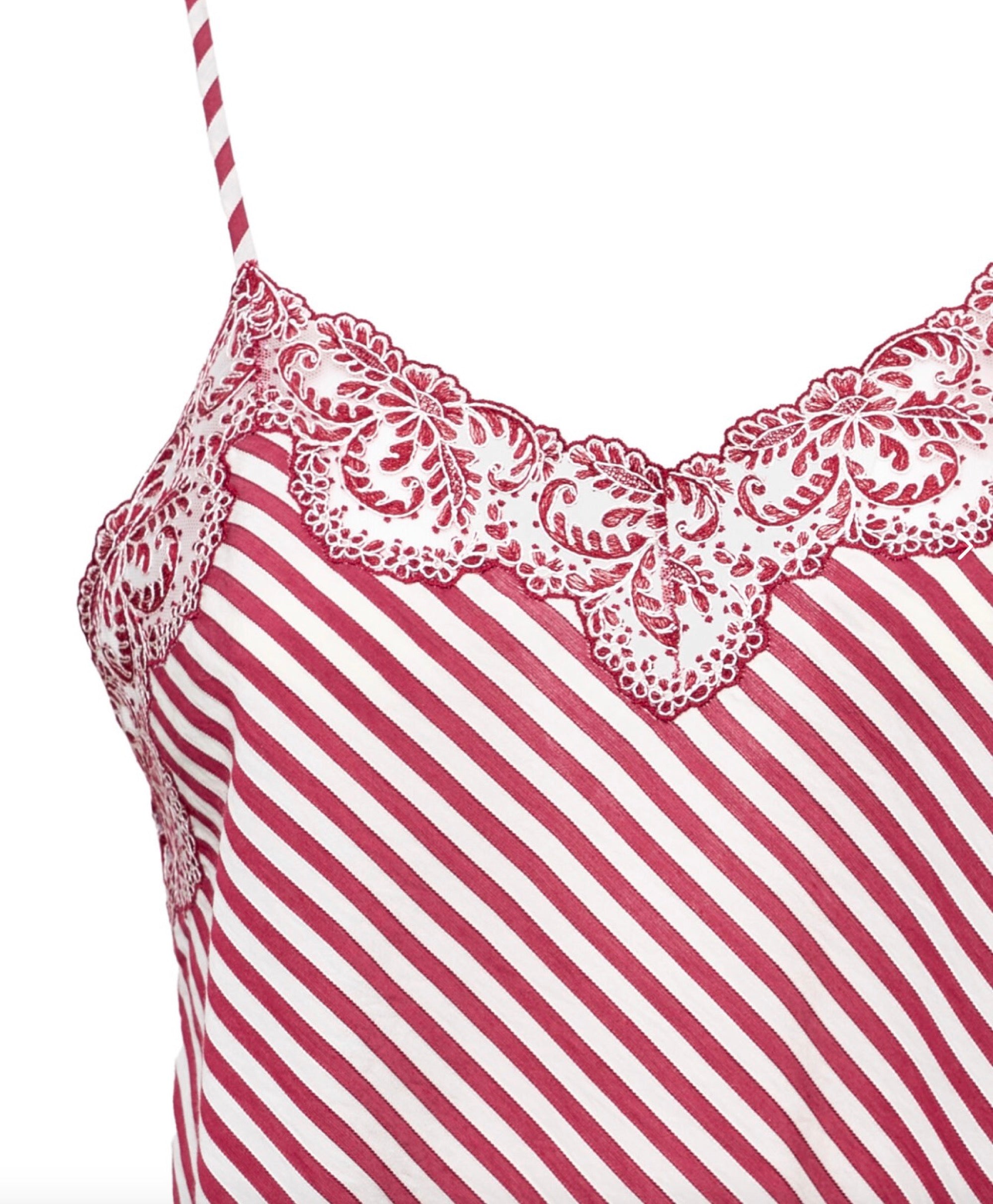 Spaghetti strap top with tonal lace edges. The print comes from our archive and the fabric is made in Italy. Each piece is hand crafted by master artisans.