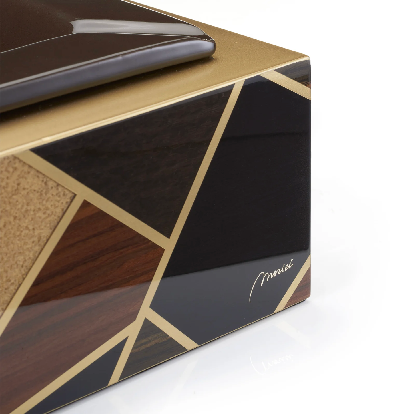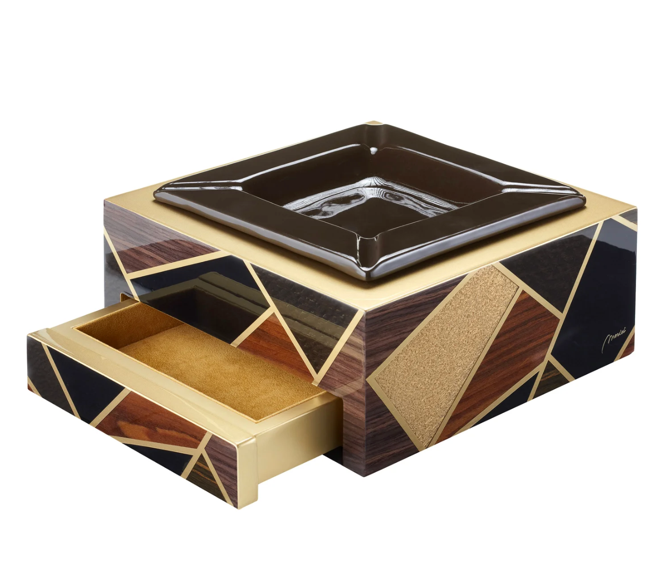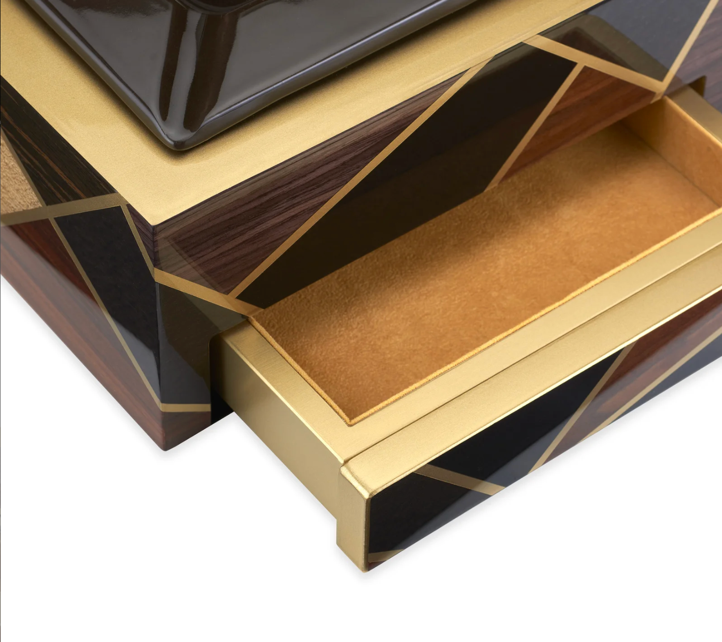 - Internal Part: Removable front drawer in golden yellow Alcantara for smoking accessories
