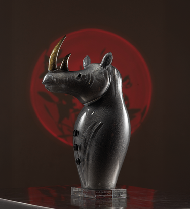Handcrafted crystal art piece by Duccio Di Segna, Italian master artisans. Breathtaking Savana collection piece: The Rhino King. A monumental crystal masterpiece celebrating African wildlife. Each piece is uniquely crafted and may vary slightly.
